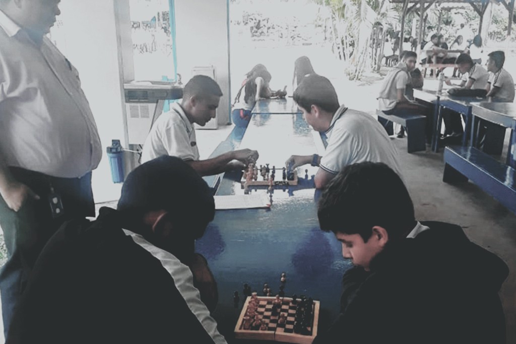 Sabías que nosotros los niños y jóvenes jugamos ajedrez en nuestros recreos y descanso, encontrando en este divertido juego como ejercitar nuestro cerebro. Tenemos tutores que son docentes y compañeros estudiantes creciendo cada día nuestro grupo de amantes del ajedrez.