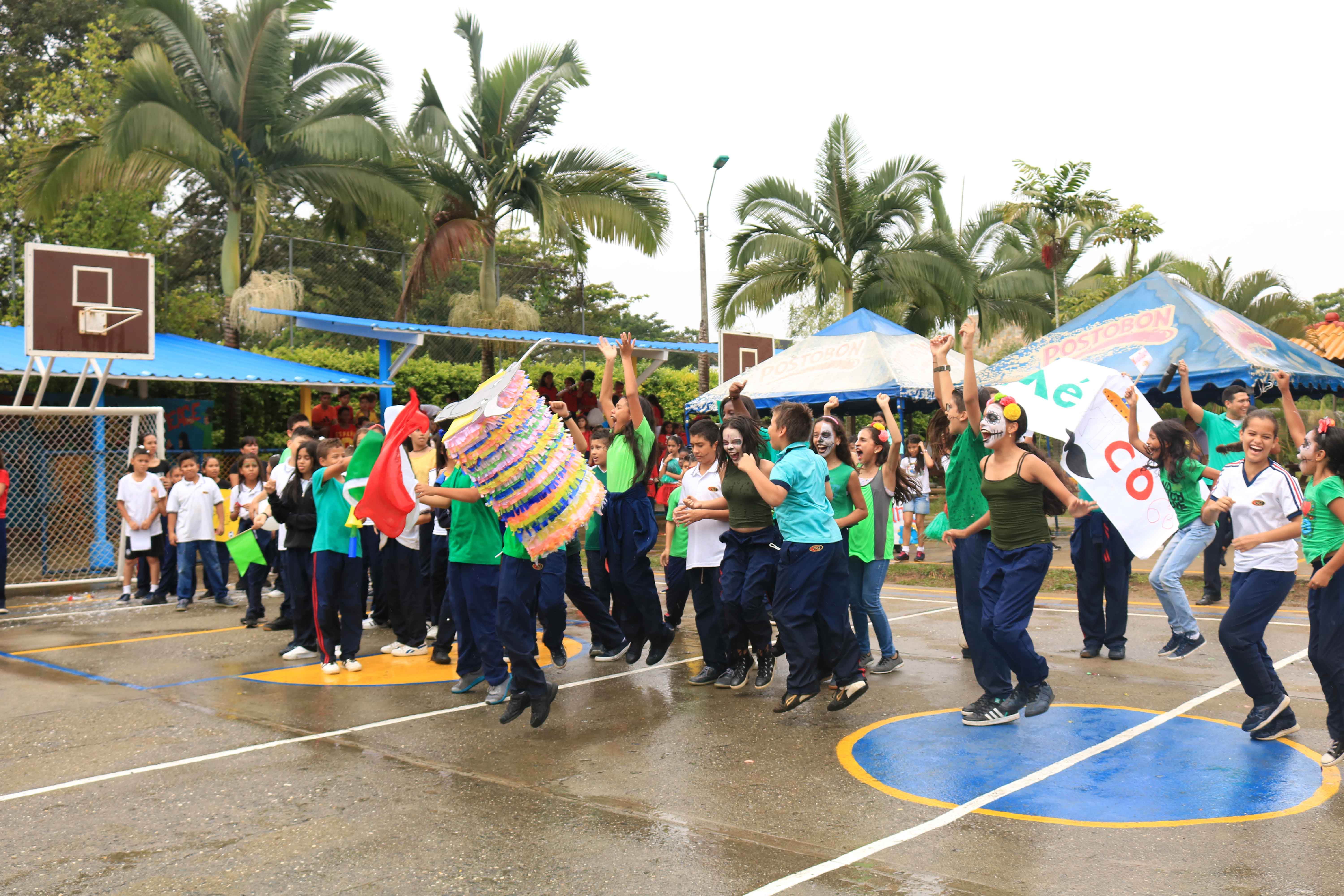 En la inauguración de nuestros juegos interclases realizada el día 29 de octubre, se llevaron a cabo dos eventos: El primer evento con los grados séptimos, octavos, novenos, decimos y onces de 8:00 a 10:00 de la mañana y el segundo evento con los grados cuartos quintos y sextos de 10:30 de la mañana a 12:30 del mediodía. Se dio apertura a los juegos con desfiles de los salones representando los diferentes países.